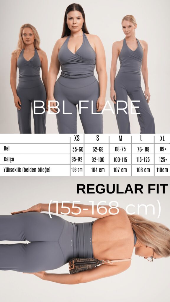 İsmi BBL flare çünkü öyle bir kalça kesimi & bel boyu orantısı var ki büzgüsüz ve eforsuz şekilde kalçanızı olabilecek en iyi halinde gösteriyor. Basenden itibaren dökümlü oluşu sebebi ile selülit göstermiyor. Pamuk karışımlı kumaşı yumuşaklığı ile kendini hissettiriyor, eforsuz şıklık yepyeni bir boyuta geçiş yapıyor.