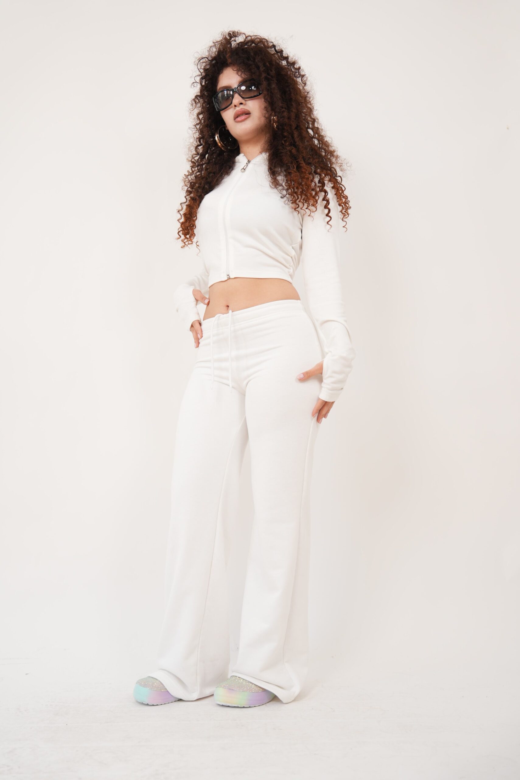 * Y2K Vibe: Düşük bel ve geniş paça (flare) uyumuyla retro bir silüet.
