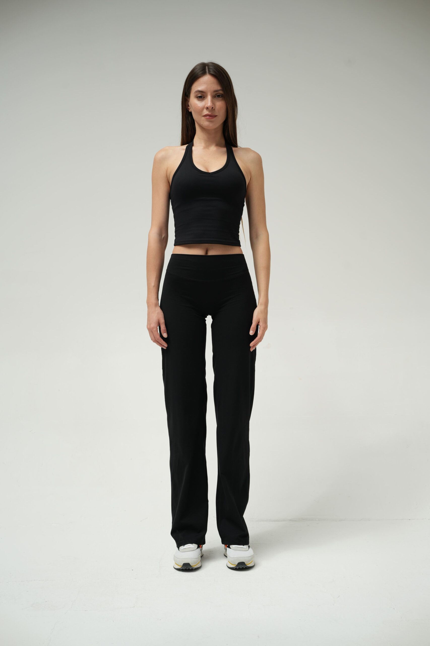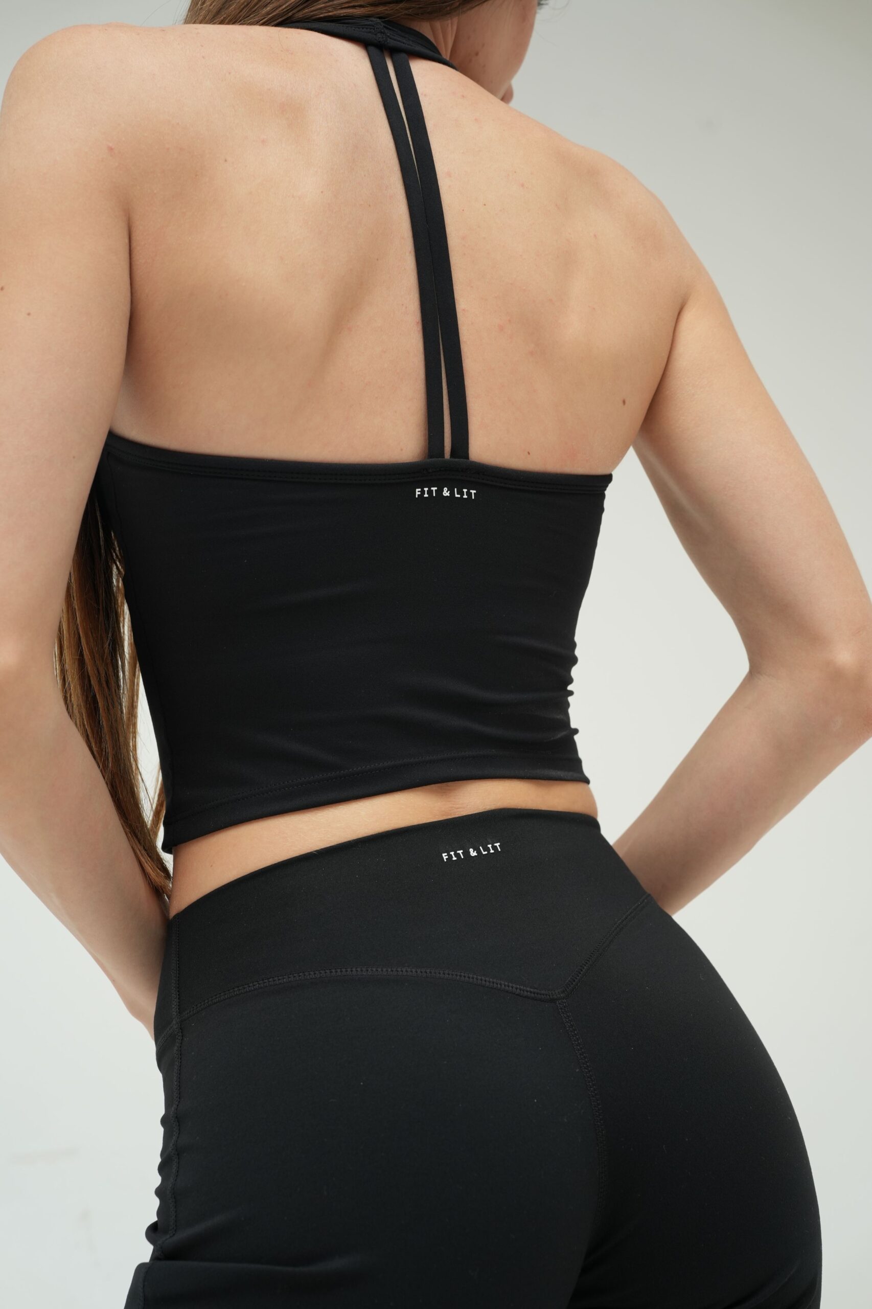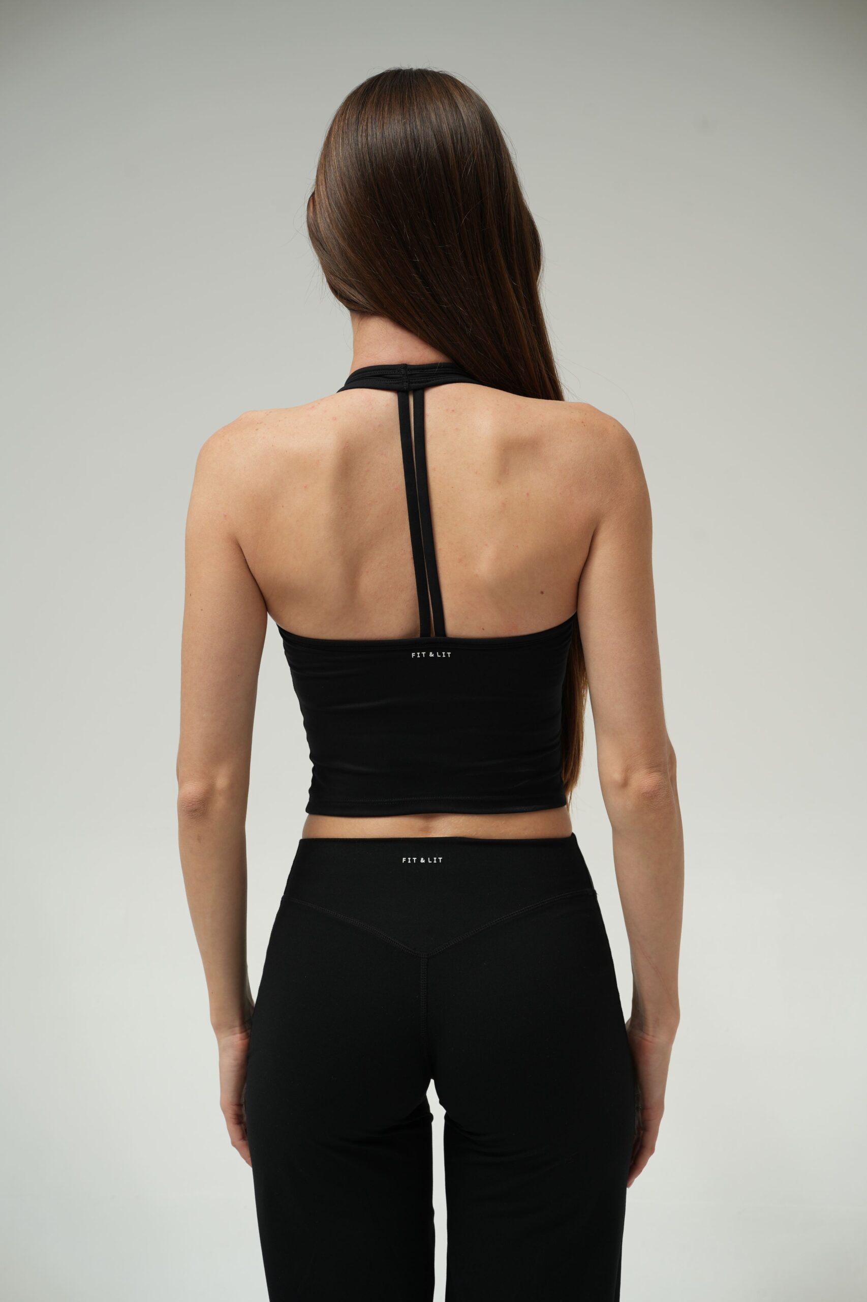 * Tasarım: Halter yaka ve minimal çift şerit sırt detayı.
